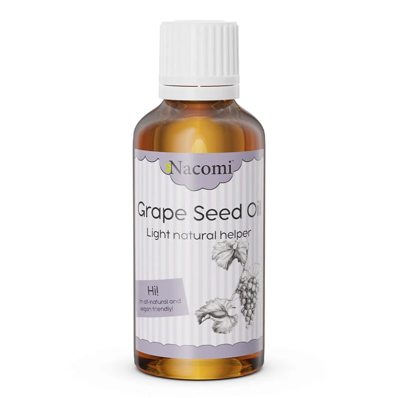 Olej z pestek winogron to w 100% naturalny, rafinowany specyfik. Posiada jasny, prawie przeźroczysty kolor i jest bezzapachowy. Wytwarzany z pestek winogron, pochodzących z owoców wykorzystanych do produkcji wina, doskonale sprawdza się w codziennej pielęgnacji oraz do produkcji domowych kosmetyków. W składzie oleju, oprócz kwasów tłuszczowych, znajdziemy flawonoidy, witaminy A, E i B6, resweratrol, minerały oraz lecytynę. Bogactwo składników aktywnych sprawia, że skóra ciała będzie odpowiednio wygładzona, nawilżona i przyjemna w dotyku, a włosy sprężyste i pełne blasku.