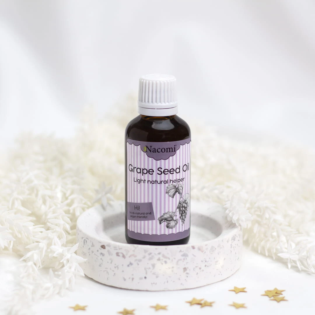 Olej z pestek winogron ma też działanie przeciwbakteryjne i przeciwgrzybiczne. Z uwagi na wysoką bio-zgodność sprawdzi się nie tylko przy cerach wrażliwych, atopowych i suchych, ale również tłustych. Dobrze się wchłania i nie pozostawia tłustej warstwy na naszym ciele. Przy cerze tłustej zapobiega zapychaniu się porów i działa antybakteryjnie, natomiast przy suchej zadba o odpowiedni poziom nawilżenia. Przeciwdziała powstawaniu zaskórników i działa łagodząco, nie powodując podrażnień. Do tego zmiękcza, wygładza skórę i dodaje jej sprężystości.